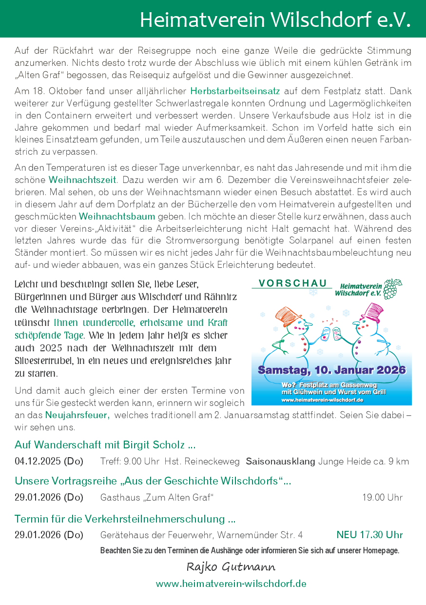 Wir wünschen allen Wilschdorfern, Freunden und Nachbarn eine schöne Zeit.